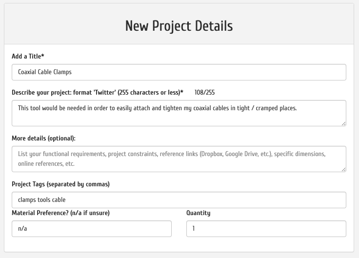 C. Then summarize the whole thing by imagining that you were explaining your concept to a five year old, or your grand mother. Short and sweet, concise, crisp, etc. Here are the questions we ask in our project intake form which allows our design engineers to be actionable.