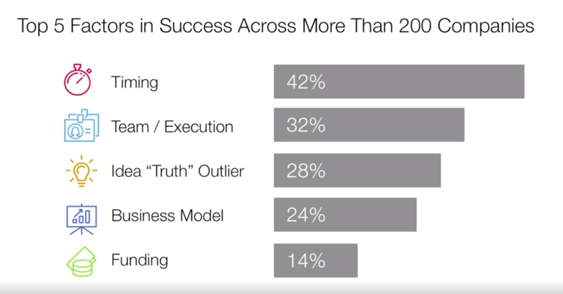 Timing is claimed to be one of the most critical aspects to business success; second to your team and third to the idea (at least according to Bill Gross in his TED talk). Yes, your idea / concept is truly not that important relative to your success. Your team and ability to execute is more important. This is because it’s widely accepted now in Silicon Valley (Startup Nation) that you iterate often, pivot your business and change the original idea until you find a winning business model. You can learn more about prototyping for business from the Haas School of Business.